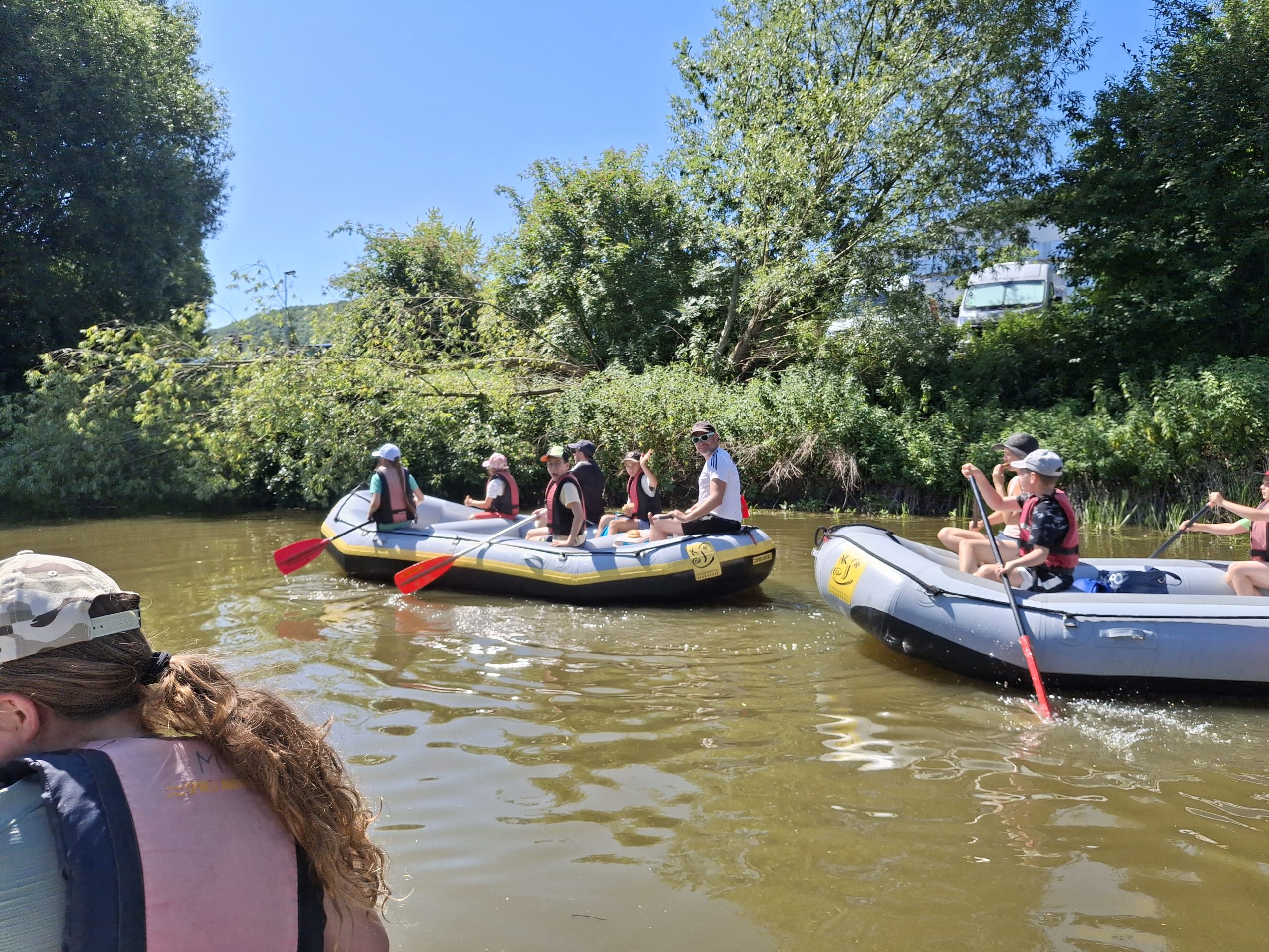 Die fleißigen Paddler starteten durch und konnten alle Gefahren durch „Bäume, Äste etc.“ meistern. Mit guter Musik und reichlich Verpflegung vergingen die 2 Stunden Fahrt wie im Flug.