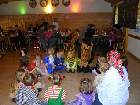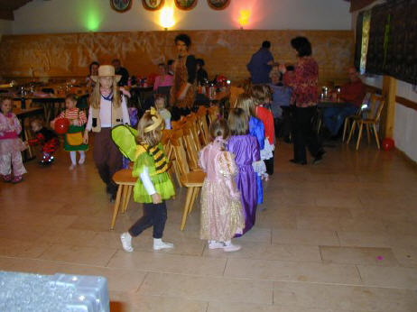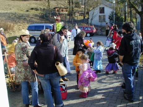 Mit einem Zug durch das Dorf begann der Kinderfasching am Dienstag. Die kleinen Maskerer tanzten und spielten, um sich anschließend mit Würstchen und Pommes zu stärken.