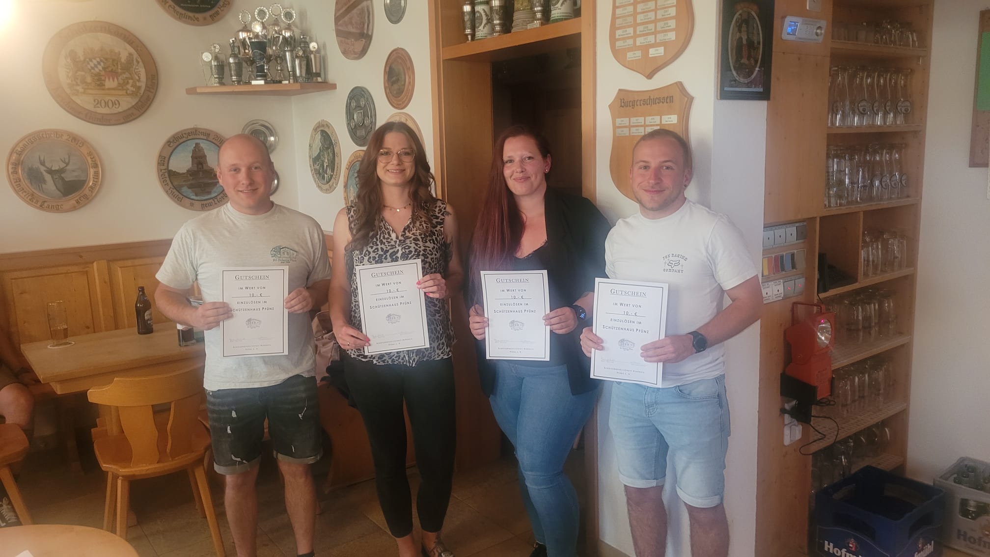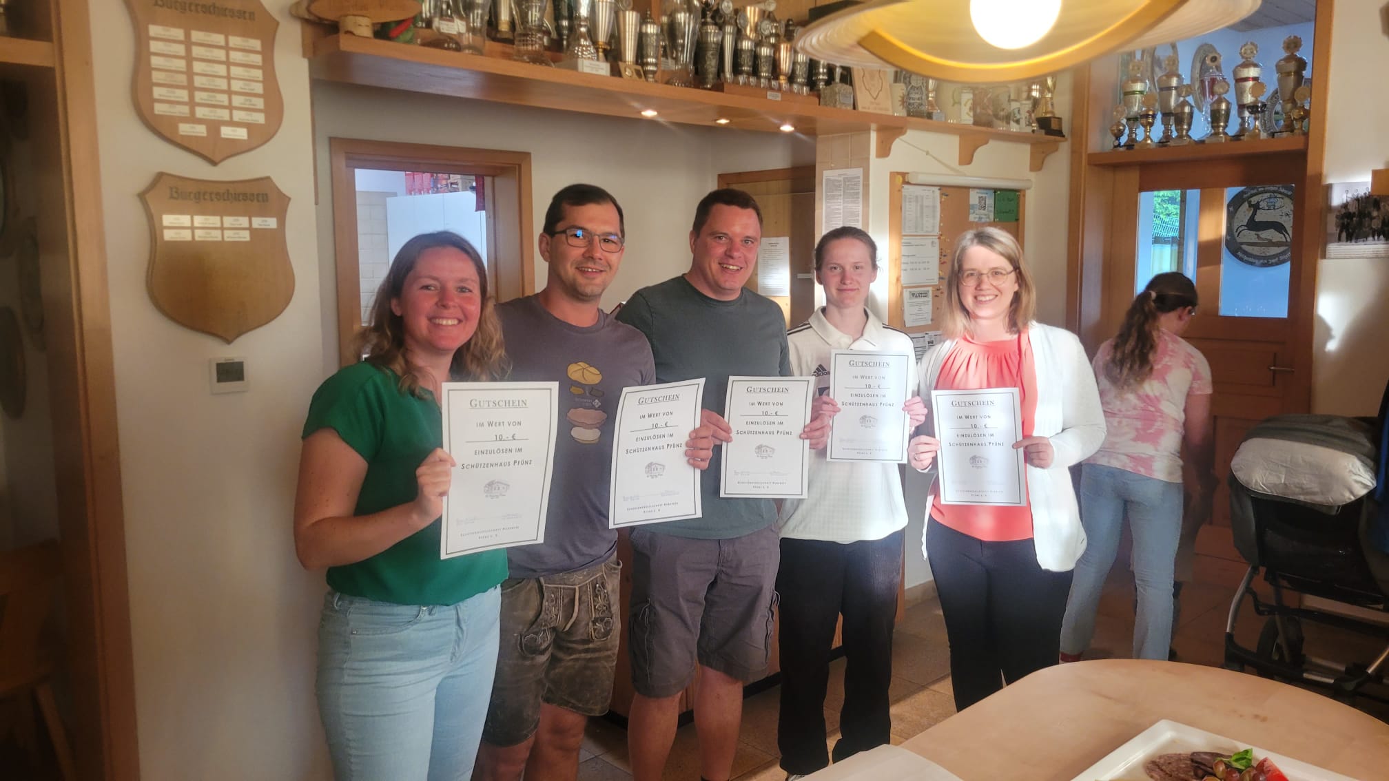 Nach einer deftigen Brotzeit ließ man gemeinsam die vergangene Saison Revue passieren. Dabei gab es heuer gleich zwei Erfolge zu vermelden: Die vierte LG-Mannschaft, bestehend aus Eva Braun, Christian Treffer, Kathrin Waldmüller, Thomas Wittmann und Mannschaftsführerin Bianca Schwarzbauer, konnte sich mit einer perfekten Saison ohne Niederlage den ersten Platz in ihrer Klasse und damit den Aufstieg in die nächsthöhere sichern. Unsere Eva war außerdem die beste Einzelschützin der gesamten Klasse. Dies gelang, mit Diana Backer, Daniel Betz, Sophie Krüger-Heckl und Mannschaftsführer Markus Betz, auch der ersten LG-Mannschaft, auch wenn man hier drei Niederlagen hinnehmen musste. Hier stand am Ende der Saison, mit einem Ergebnis von 1.478 Ringen in einem Wettkampf, außerdem ein neuer Vereinsrekord. Auf bayerisch gesagt „ums Arsch lecken“ knapp verpasste leider die dritte LG-Mannschaft den ersten Platz in ihrer Klasse. Über die gesamte Saison gesehen, fehlten hier nur zwei Ringe (!) zum besseren Schnitt und dem ersten Platz. Die zweite LG-Mannschaft konnte sich, nach ihrem Aufstieg im letzten Jahr, einen souveränen vierten Platz sichern, die LP-Mannschaft ist dagegen, auch wegen Verletzungsproblemen der etablierten Schützen, leider auf dem letzten Platz gelandet und damit abgestiegen.